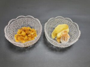 - リンゴは重ね過ぎず、器の中央に軽くまとめる