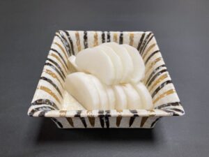 - たくあんは、薄く切って2切れか3切れで出すのが一般的だが、「1切れ」は、