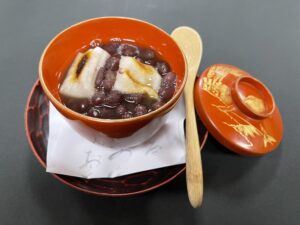 - 餅を焼いて器に入れて、たっぷりの小豆をかけて出来上がり!