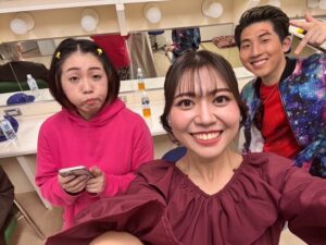 ▲楽屋での一枚。2か月一緒にいたら、もうみんな家族よ♡
