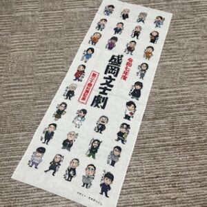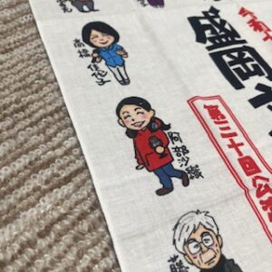▲文士劇てぬぐい!そのだつくしさんによるイラストです。